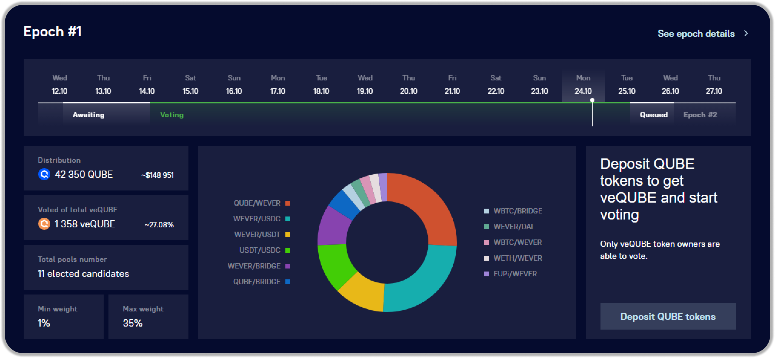 Total votes - the amount of veQUBEs used as votes in the voting of an Epoch.