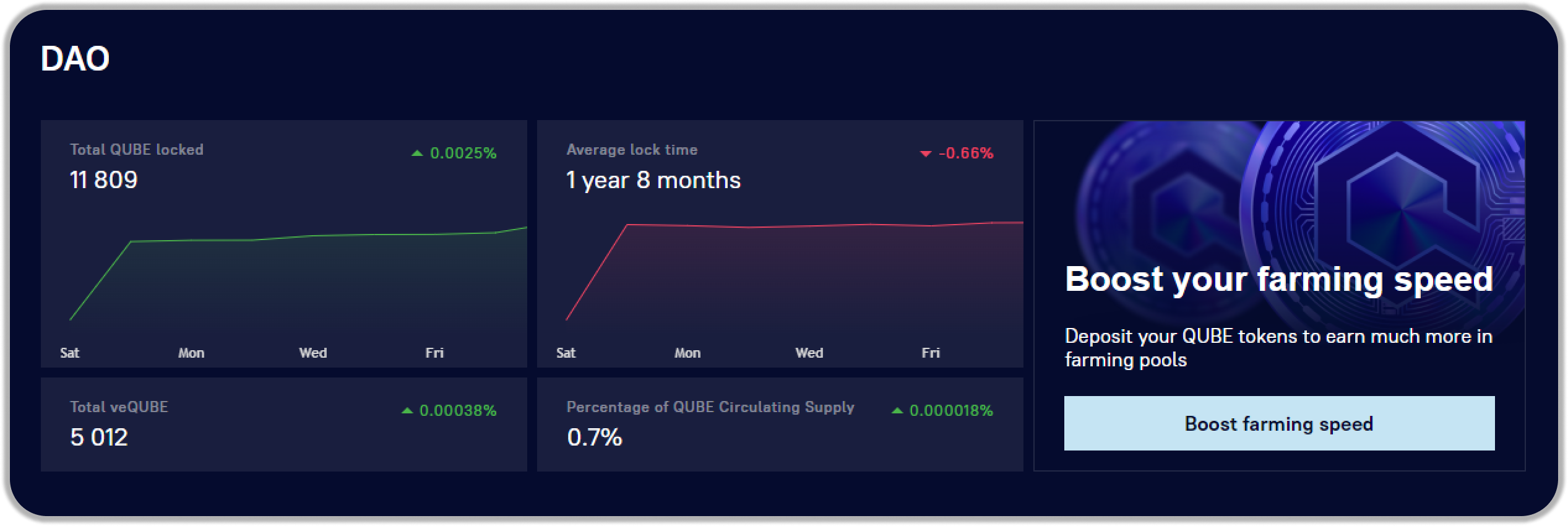 Total QUBEs locked - displays the number of QUBEs locked in the QUBE DAO contract.