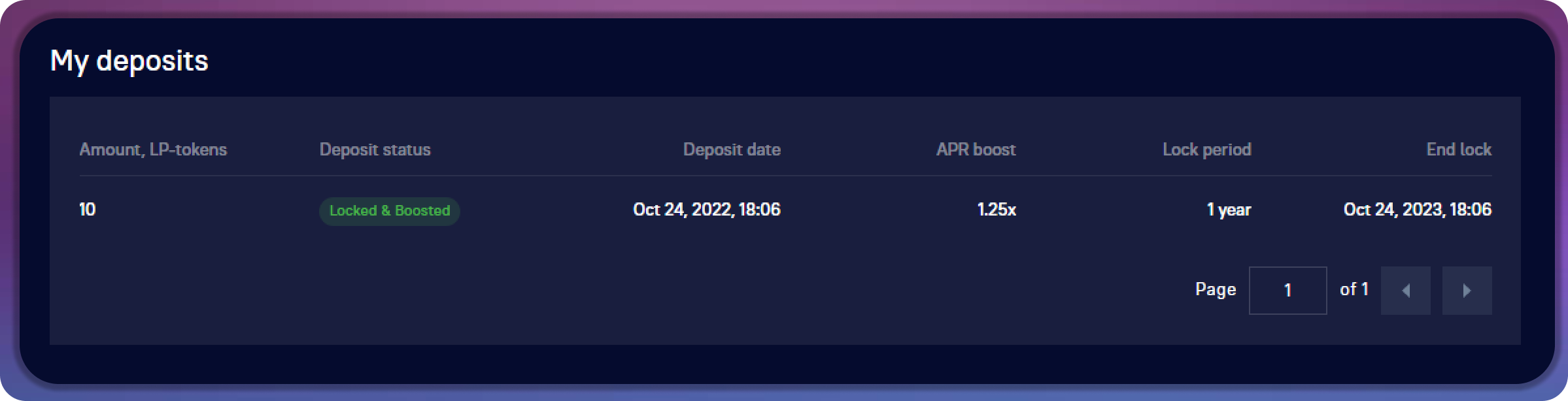 Below is the My deposits block, which contains information about your deposits into this pool: