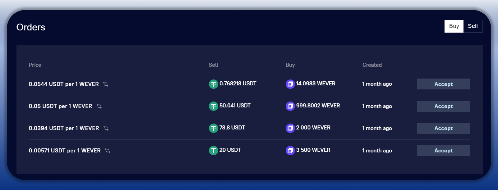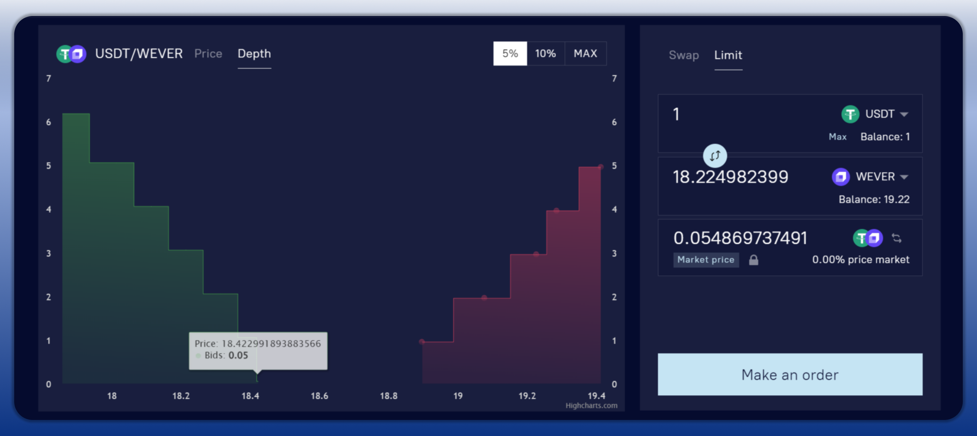 Make an Orderbutton and confirm the transaction. Your order will be placed on the blockchain and will appear in theMy Orderssection.Click