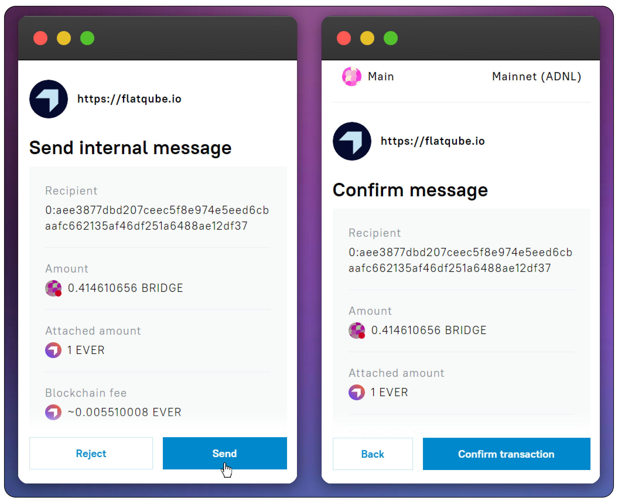 At this point, an EVER Wallet window will open, where you will need to confirm the transaction.\