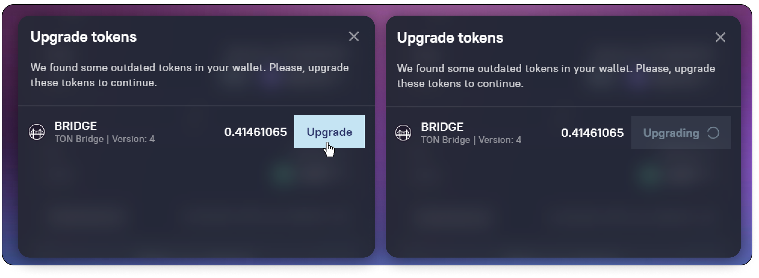 If you have obsolete tokens in your EVER wallet (for example, TIP-3), then when you [connect your wallet](https://docs.flatqube.io/use/getting-started/how-to-connect-a-wallet) to FlatQube (or just open FlatQube if the wallet was connected earlier), you will automatically receive an offer to update them.
